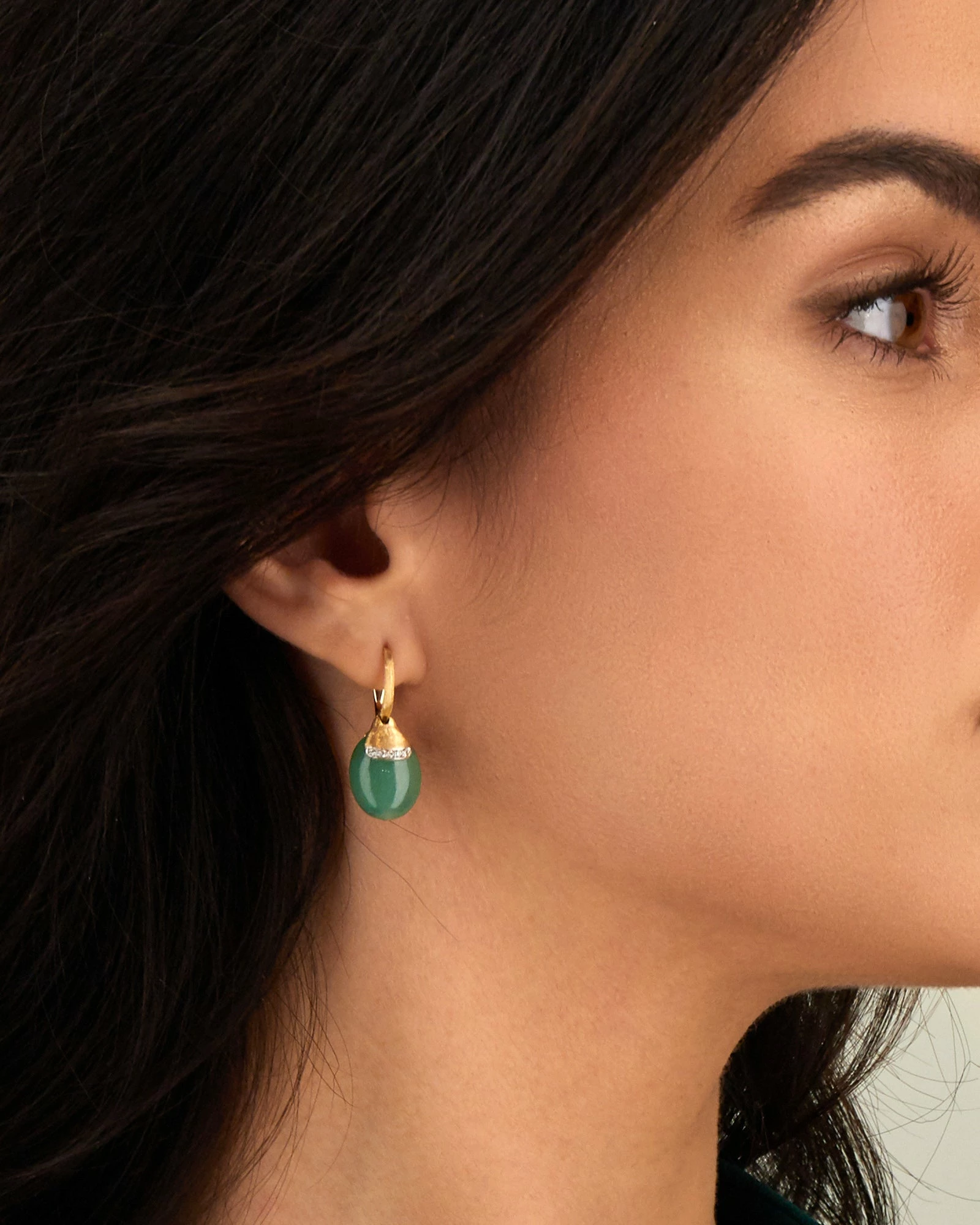 Our iconic CILIEGINE become green in this elegant version in 18kt gold, diamonds and green aventurine, inspired by the extraordinary Amazon, green lung of the Earth and home of the biggest biodiversity of the world. Let yourself be seduced by this elegant and precious jewel, ready to accompany you in all your travels.
