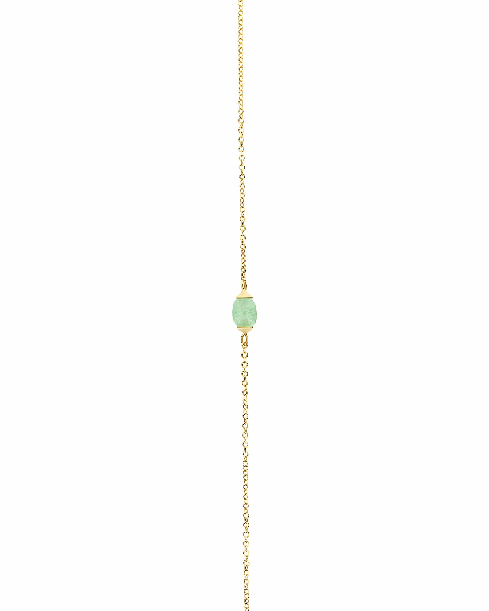 From our gypsy Terre Lontane collection, a delicate 18kt gold necklace decorated with a green aventurine boule. The gold ring allows you to adjust the size of the jewel, making it more or less high-necked, according to your taste. The necklace can be worn alone or, for an extra touch of color, it can be personalized with the magnificent pendants of the AMAZONIA series (PS17-603, PS10-603, PS3-603), inspired by the extraordinary green lung of the Earth.