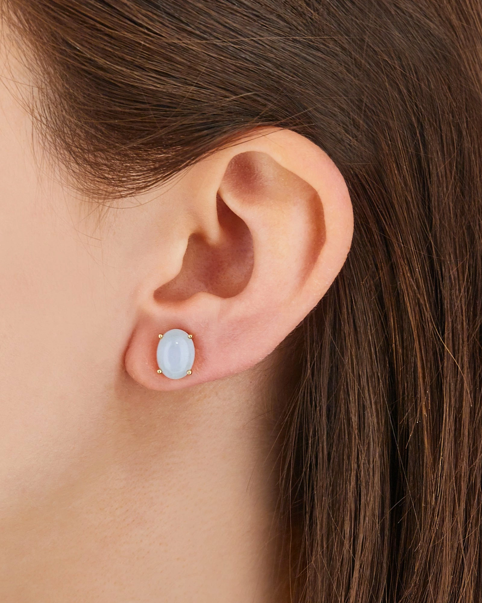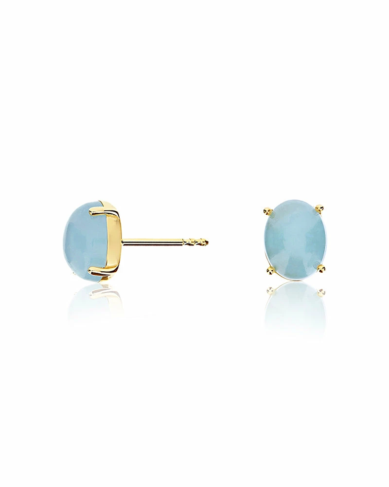 The elegance of the sea and its unique colors distinguish these handmade lobe earrings in 18kt gold and milky aquamarine, much loved by our designer Laura for its inner veining that makes each stone different and unique. A marine and delicate touch to your look!