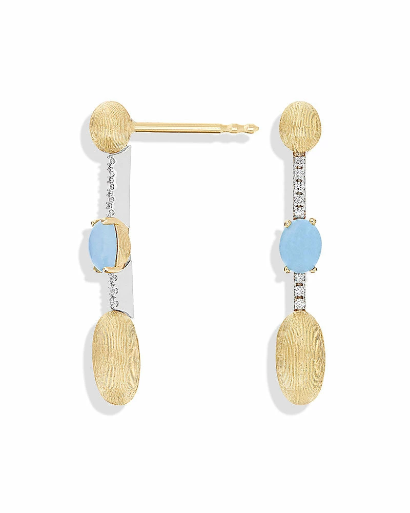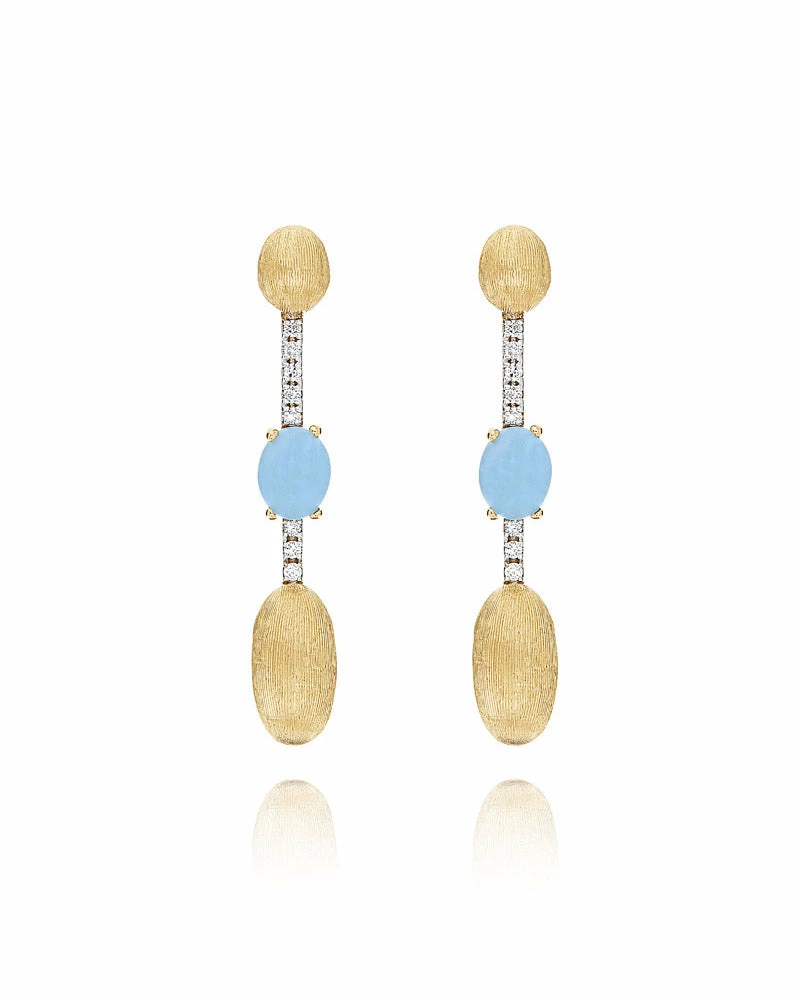 An ode to an elegance that rewrites shapes and details with sophistication, this 18 kt gold, diamonds and aquamarine jewel will follow you on the most elegant occasions as in the more casual ones. Laura, who tests each of her creations, has created special butterflies for these earrings, equipped with a little plate to support the upper part of the earring, ensuring a perfect wearability.