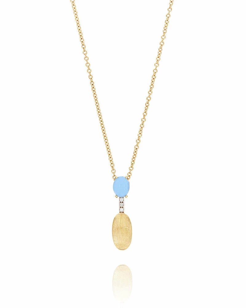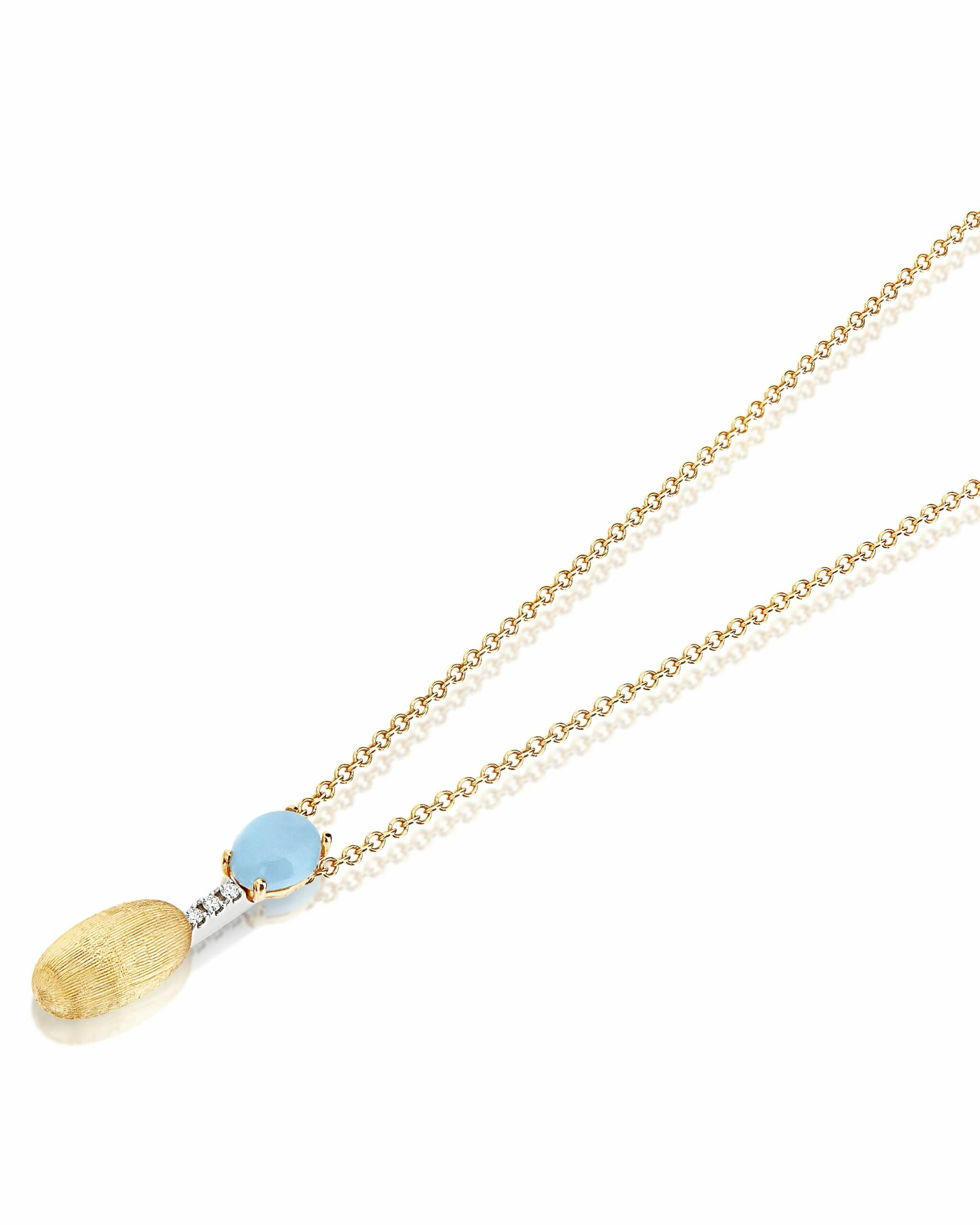 An ode to an elegance that rewrites shapes and details with sophistication, this 18 kt gold, diamonds and aquamarine jewel will follow you on the most elegant occasions as in the more casual ones.