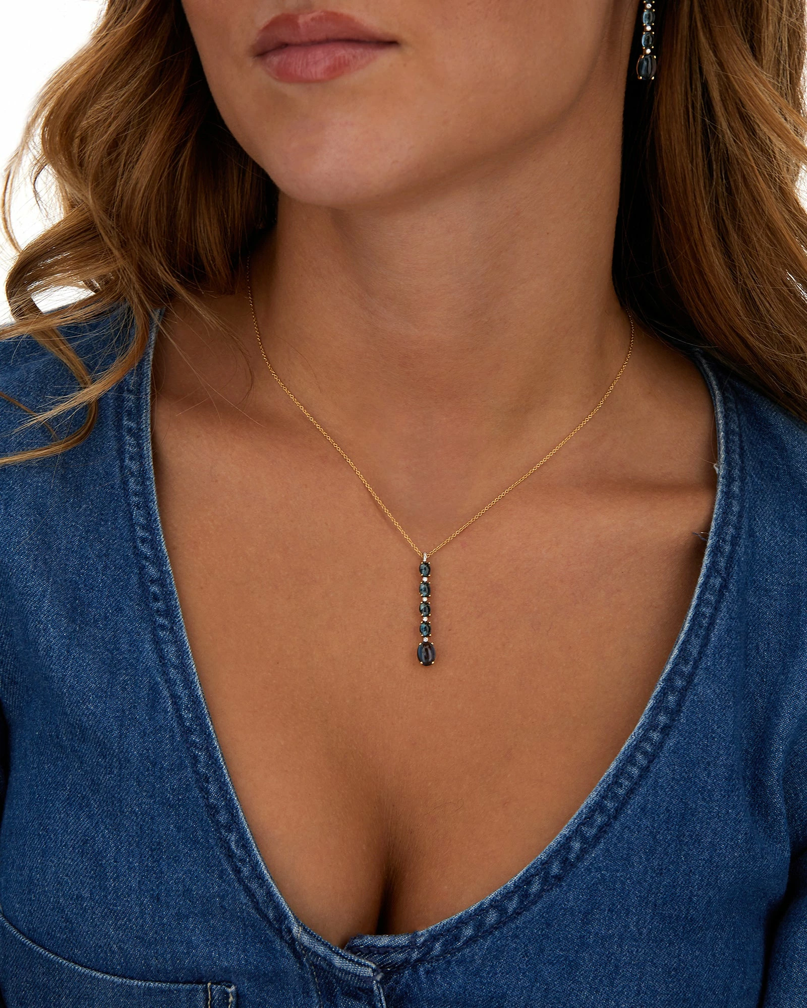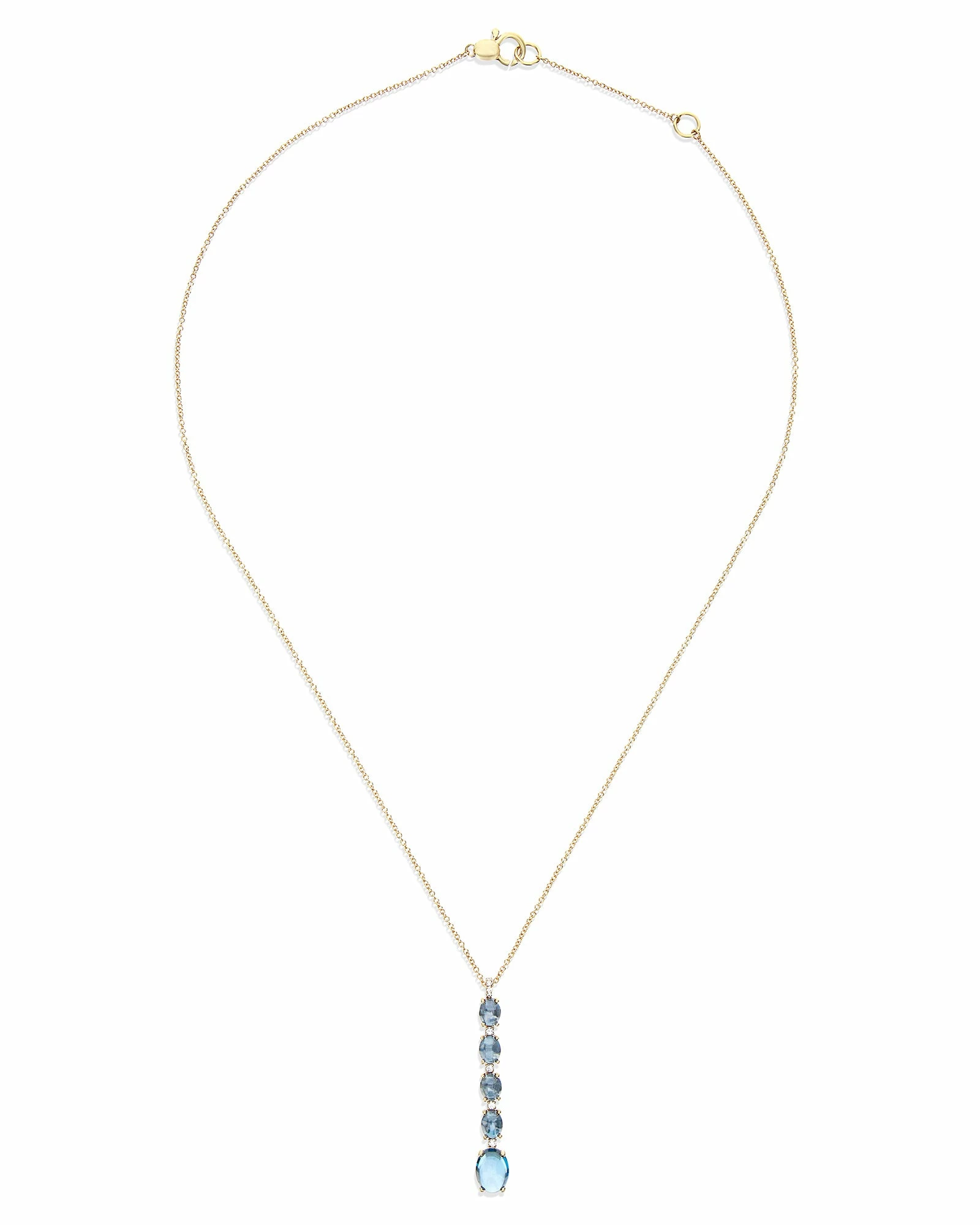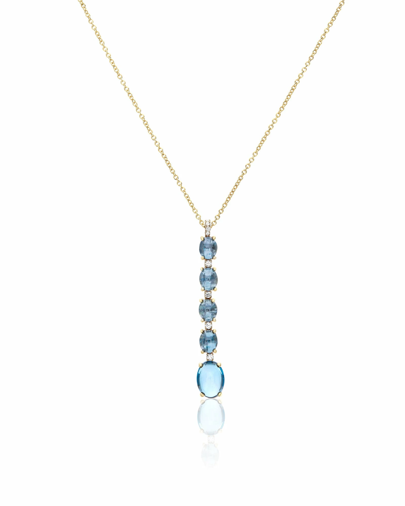 Refined necklace in 18kt gold and London Blue Topaz crowned with elegant diamond details. A jewel whose colors remind of those of the ocean and made entirely by hand by the skilled hands of Nanis artisans.