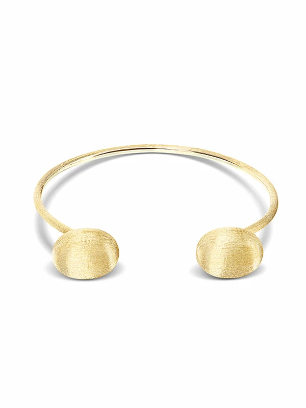 At Nanis we are nothing short of in love with bangles and we worked a lot on this jewel because we wanted it not only modern in terms of design but also extremely light and flexible! We have come to this bracelet in 18-karat gold and entirely hand-engraved, which culminates with our iconic gold boules which, once worn, embrace the skin creating a truly unique effect on the wrist.