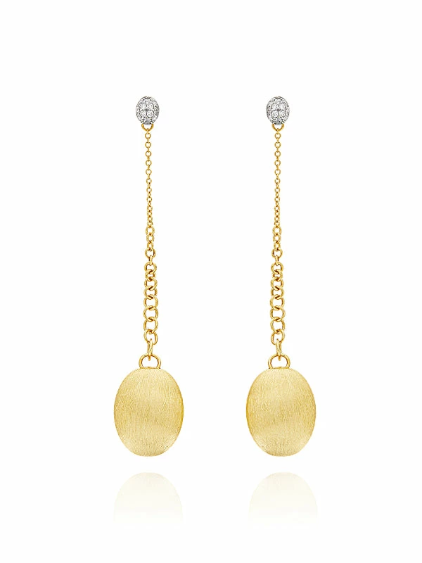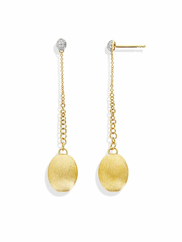An elegant and refined design distinguishes these delicate, “fluid” earrings, made in 18kt gold and diamonds. Laura, who tests all her creations, designed for them special butterflies equipped with a little plate to support the upper part of the earring, ensuring a perfect wearability.