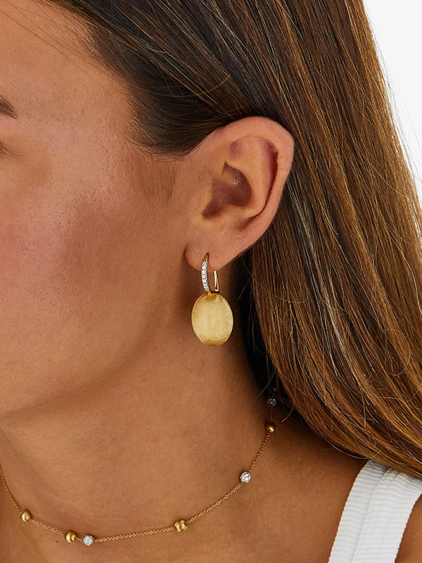Our “cherry” in 18kt gold and diamonds, this charming earring has become among the most iconic of Nanis jewels. Extremely elegant when worn alone, more contemporary when combined with its smaller versions, this hand-engraved boule illuminates and fascinates, like a timeless poem.