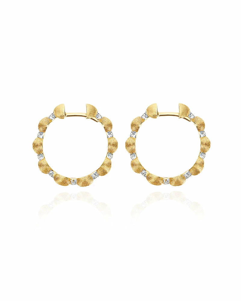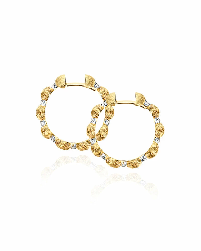 A classic and contemporary flavour at the same time distinguishes these handmade creoles in 18kt gold and brilliants, perfect for any look! Laura’s advice? Play with this jewel, and if you have several holes combine them with other earring models!