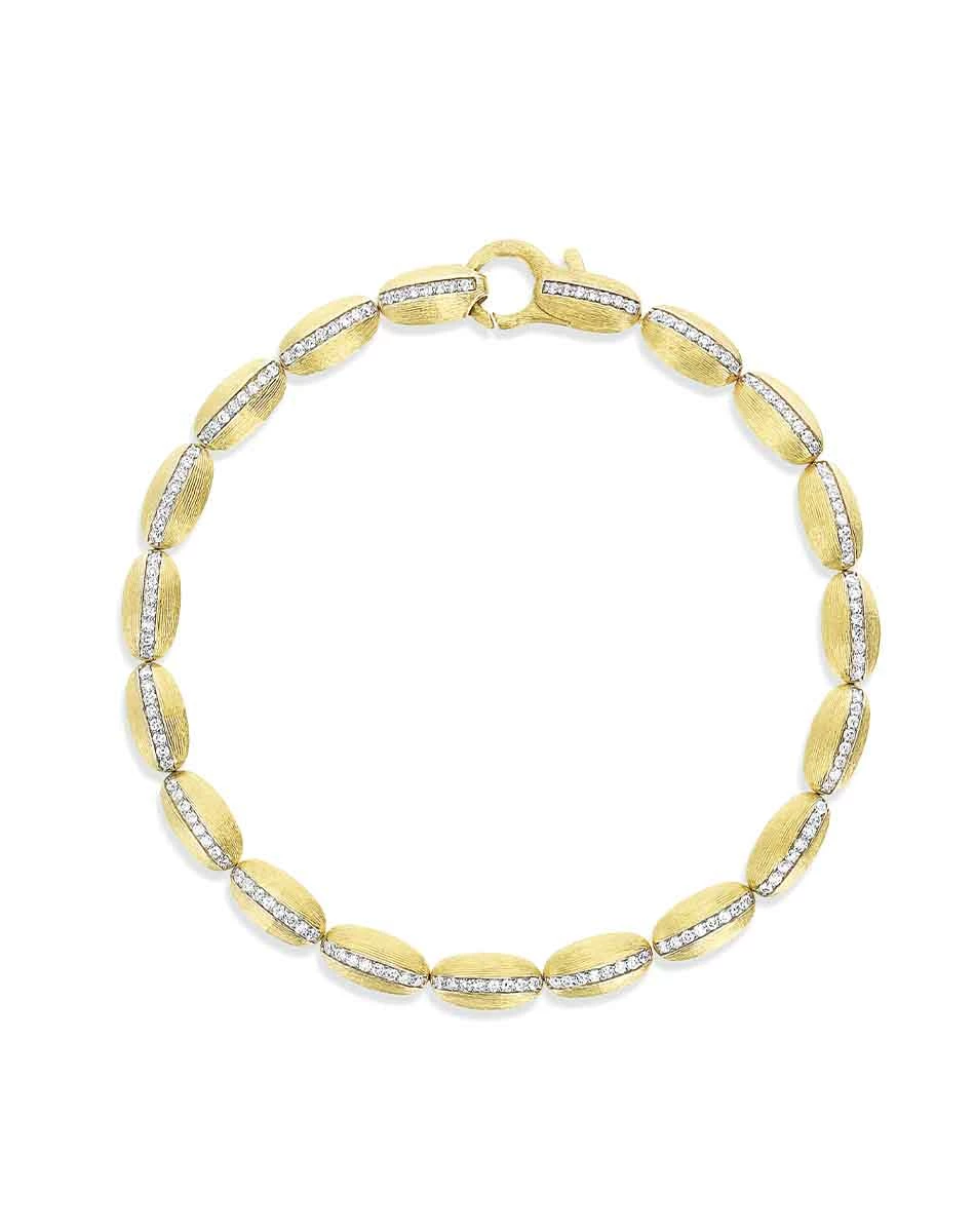 In this bracelet from DIVA collection, our iconic boule has been reinterpreted with originality and savoir-faire, becoming more tapered without losing its signature sinuosity and softness. The iconic hand-engraved finishing, Nanis’ workmanship par excellence, makes this 18kt gold and diamonds jewel even more sparkling, a true goldsmith’s masterpiece.