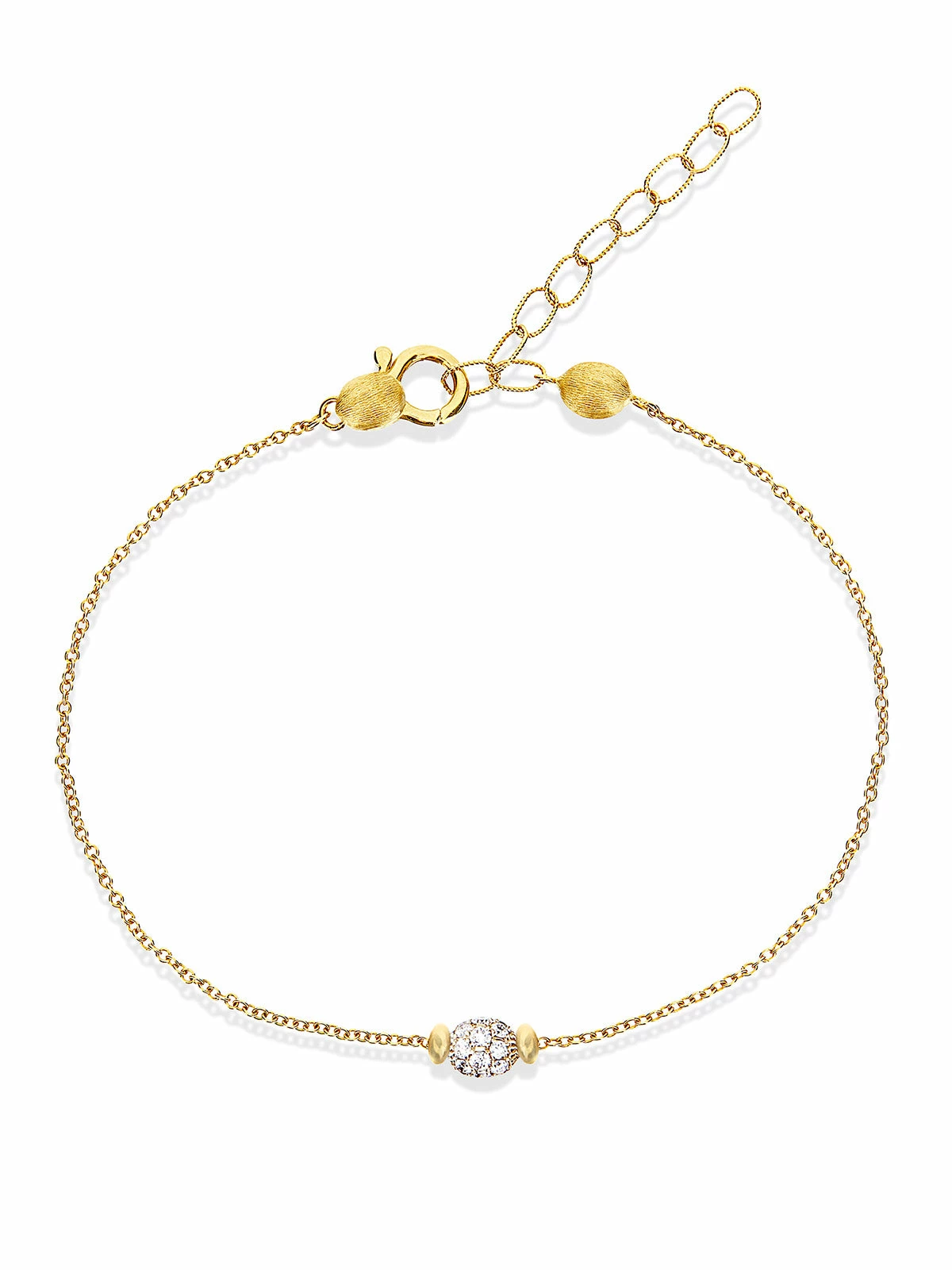 18kt gold bracelet with a delicate diamonds boule, entirely handmade in our atelier located in vicenza. Minimal and glamour at the same time, this is the jewel that can’t miss in your jewelry box, perfect to be worn both alone or matched with other bracelets for a more contemporary look.