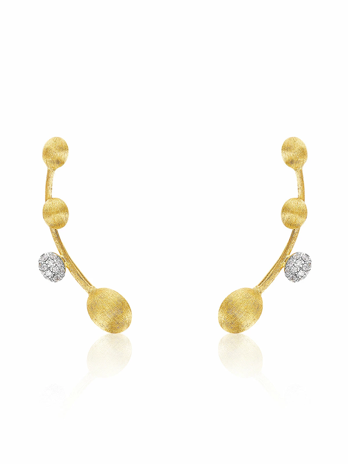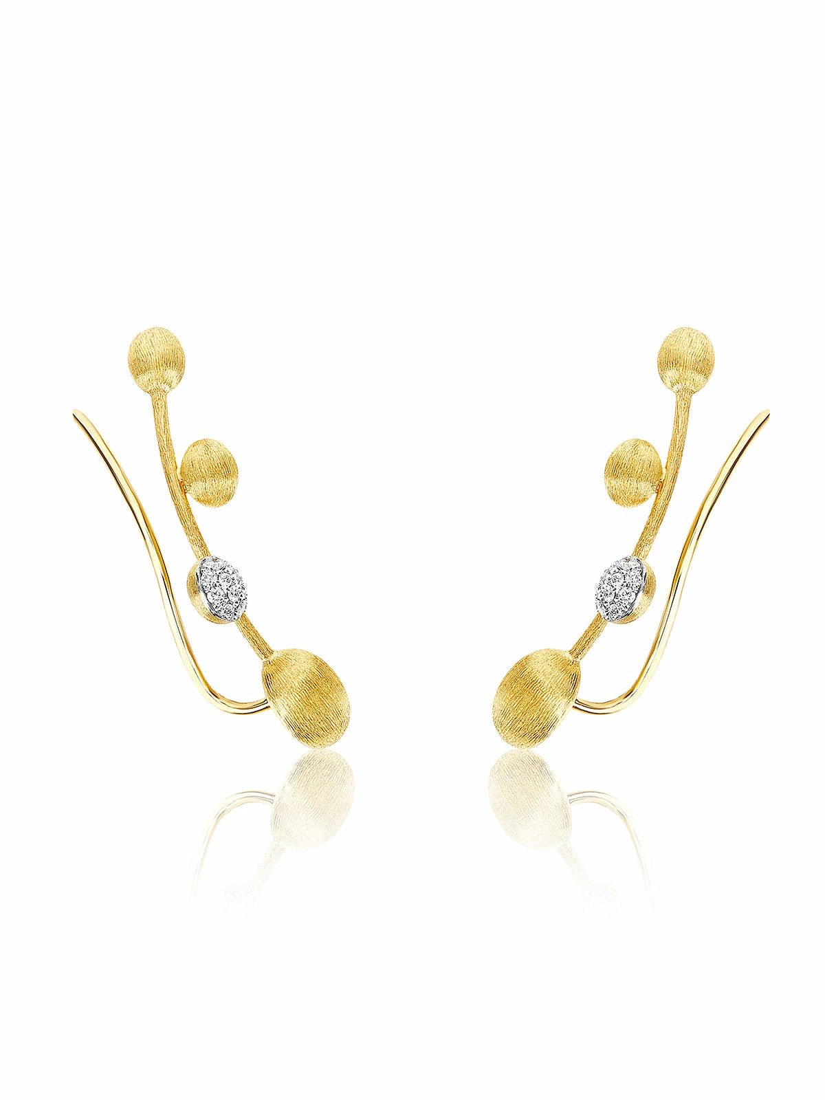 An 18kt gold and diamonds twig, ready to decorate your ear in an unusual and extremely cool way! Laura, who tests each of her creations, has created special butterflies for these earrings, equipped with a little plate to support the upper part of the earring, ensuring a perfect wearability.