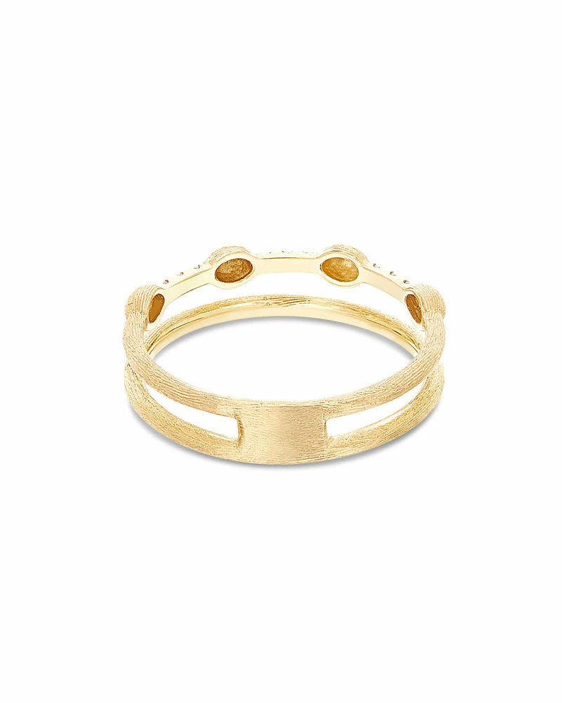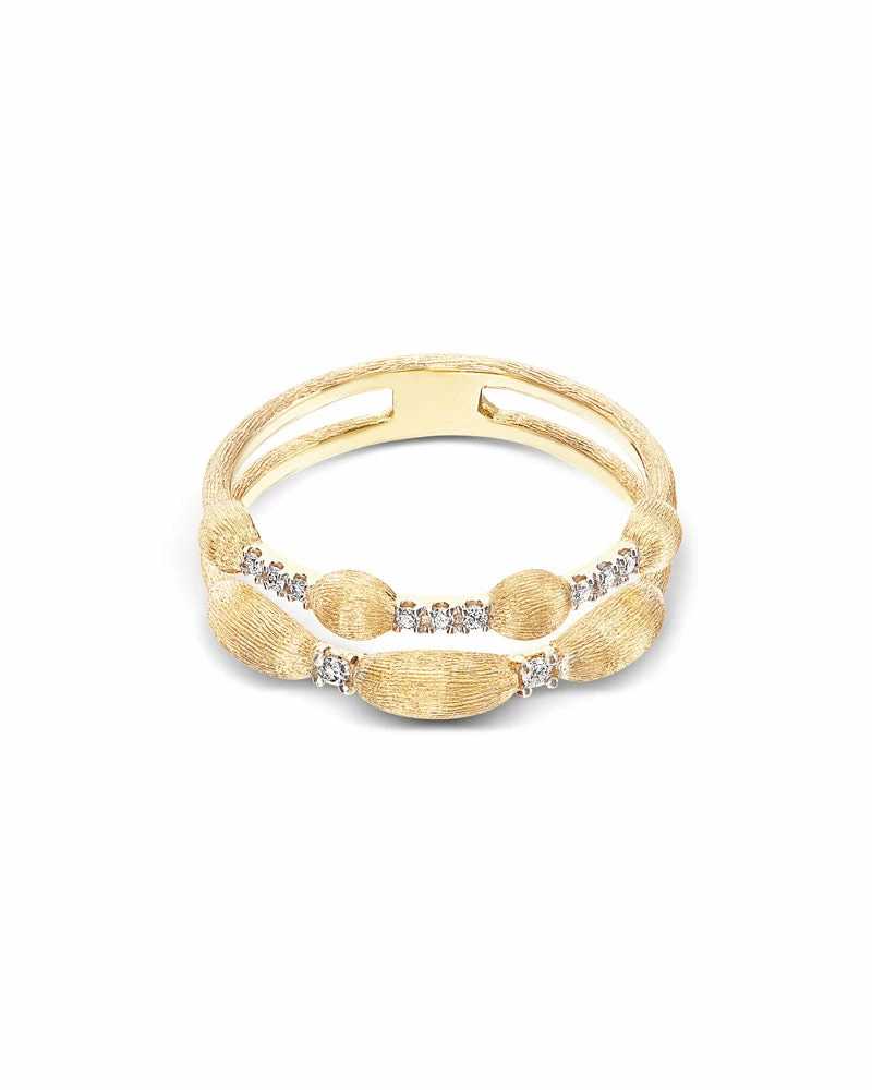 Diamonds and 18kt yellow gold chase each other in this sophisticated ring, tenderly wrapping your finger and making it sparkle.