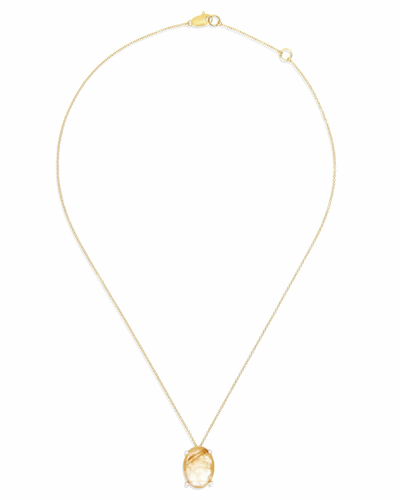 A jewel that our designer Laura conceived as an ode to one of her favorite stones: rutilated quartz. Its incredible inside streaks, so perfectly imperfect, are embraced by sparkling diamonds and make this 18kt gold necklace a masterpiece of essentiality and elegance, to be worn alone or together with the smaller model (CS35-576). A jewel with a timeless charm, capable of reminding us how precious (our) uniqueness is.