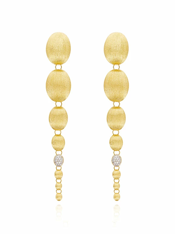 Light, rounded, impalpable: just like clouds! These hand-engraved 18 kt gold and diamonds earrings, a masterpiece of craftsmanship and design, will surprise you not only for their beauty but also for their extreme lightness: once worn, you will forget to have them on…After all, for Laura wearability is fundamental with jewels, and you can see it not only in the lightness but also in some little, “tailored” details: the first boule slightly hollowed to perfectly welcome the lobe, and the special butterflies equipped with a little plate to support the upper part of the earring, ensuring a perfect fitting.