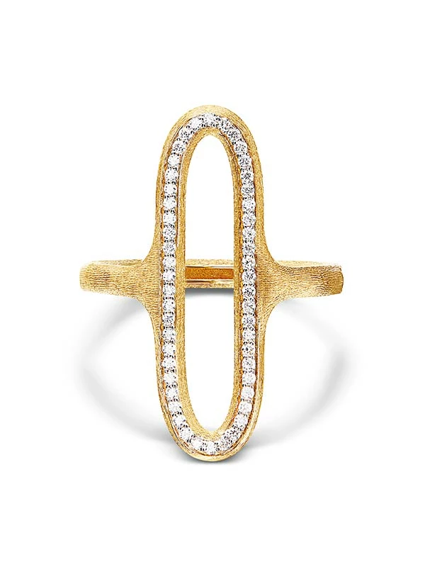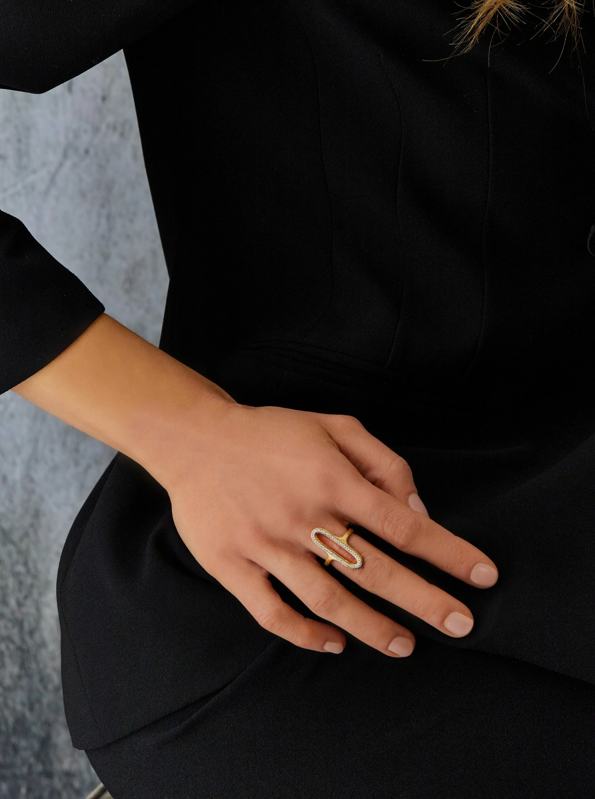 A sinuous and new geometry distinguishes this ring in 18kt gold and diamonds, which seems to be suspended on the hand, light and free. A small masterpiece of craftsmanship from the LIBERA collection.