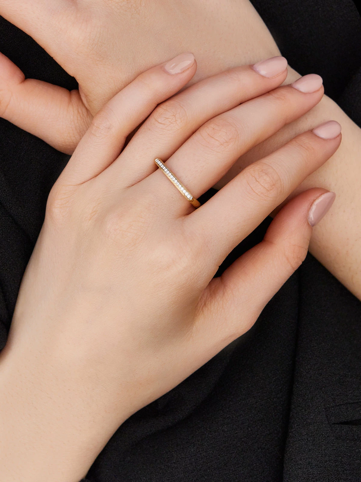 An ode to the encounter of different geometries in a perfectly harmonious way, this handcrafted 18kt gold and diamonds pavé ring will seduce you with its essential refinement.