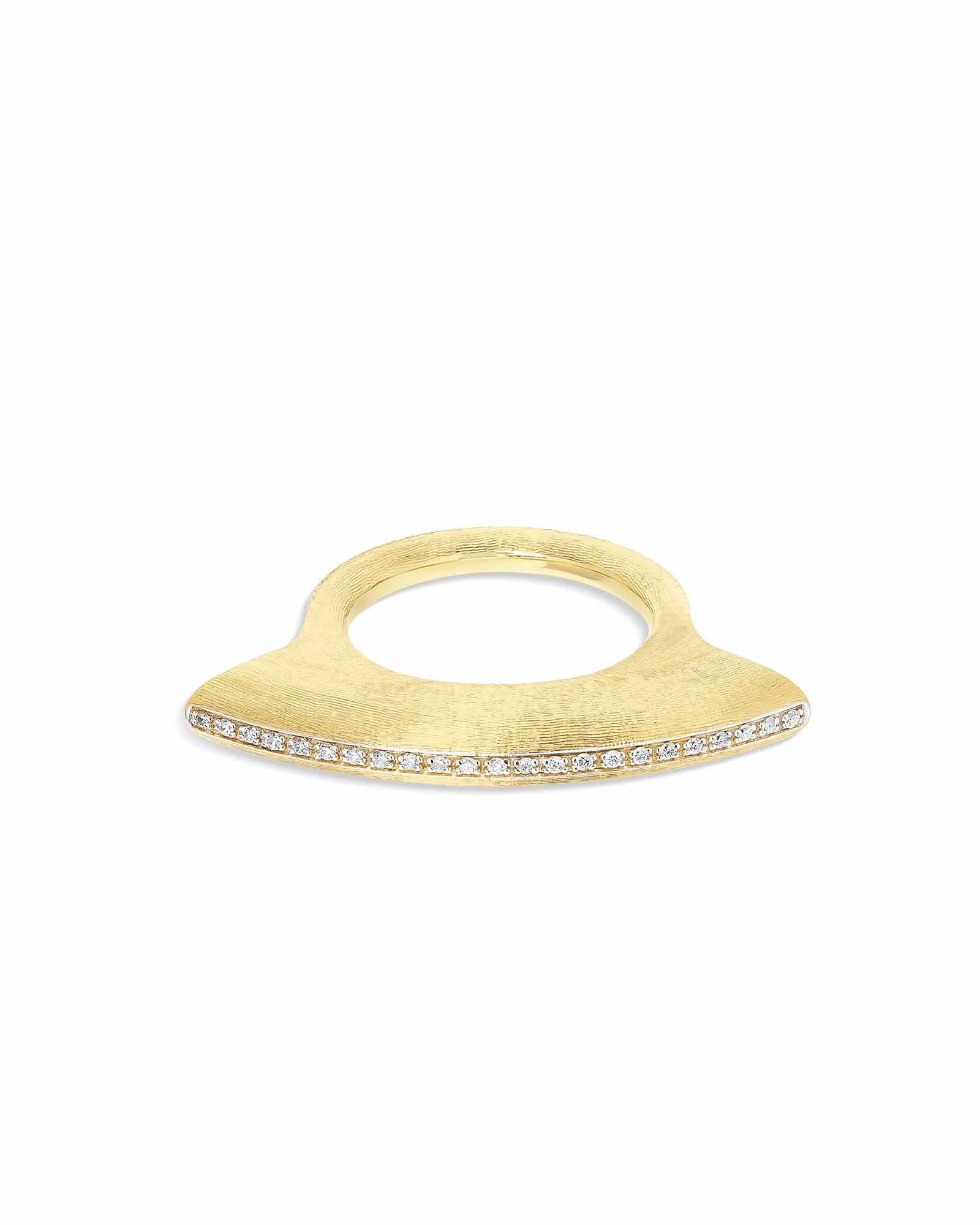 Freedom and creativity characterize this ring in 18kt gold and diamonds pave by the unique design, that seems suspended, marrying and emphasizing their movements and their gestures.