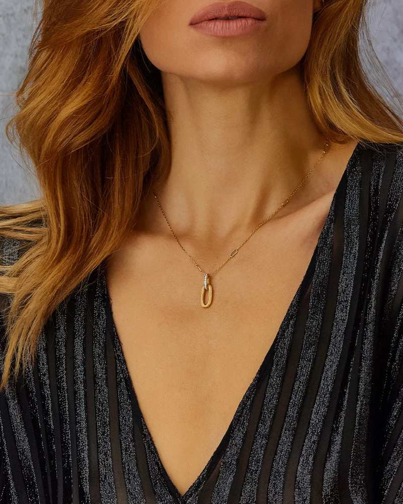 Light and minimal, this necklace from the LIBERA collection, in 18kt gold and diamonds is entirely handmade by our artisans. The perfect jewel to give a touch of refined elegance to your look.