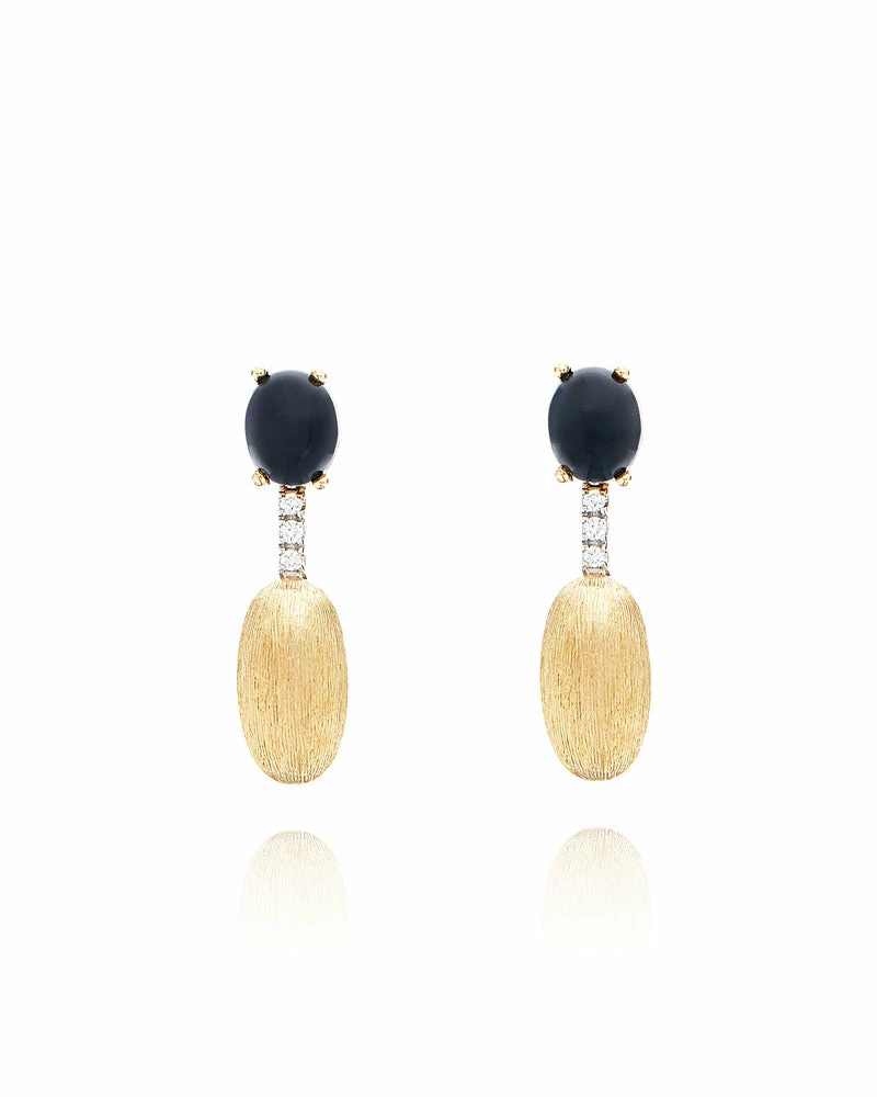 An ode to an elegance that rewrites shapes and details with sophistication, this 18 kt gold, diamonds and black onyx jewel will follow you on the most elegant occasions as in the more casual ones.Β Laura, who tests each of her creations, has created special butterflies for these earrings, equipped with a little plate to support the upper part of the earring, ensuring a perfect wearability.