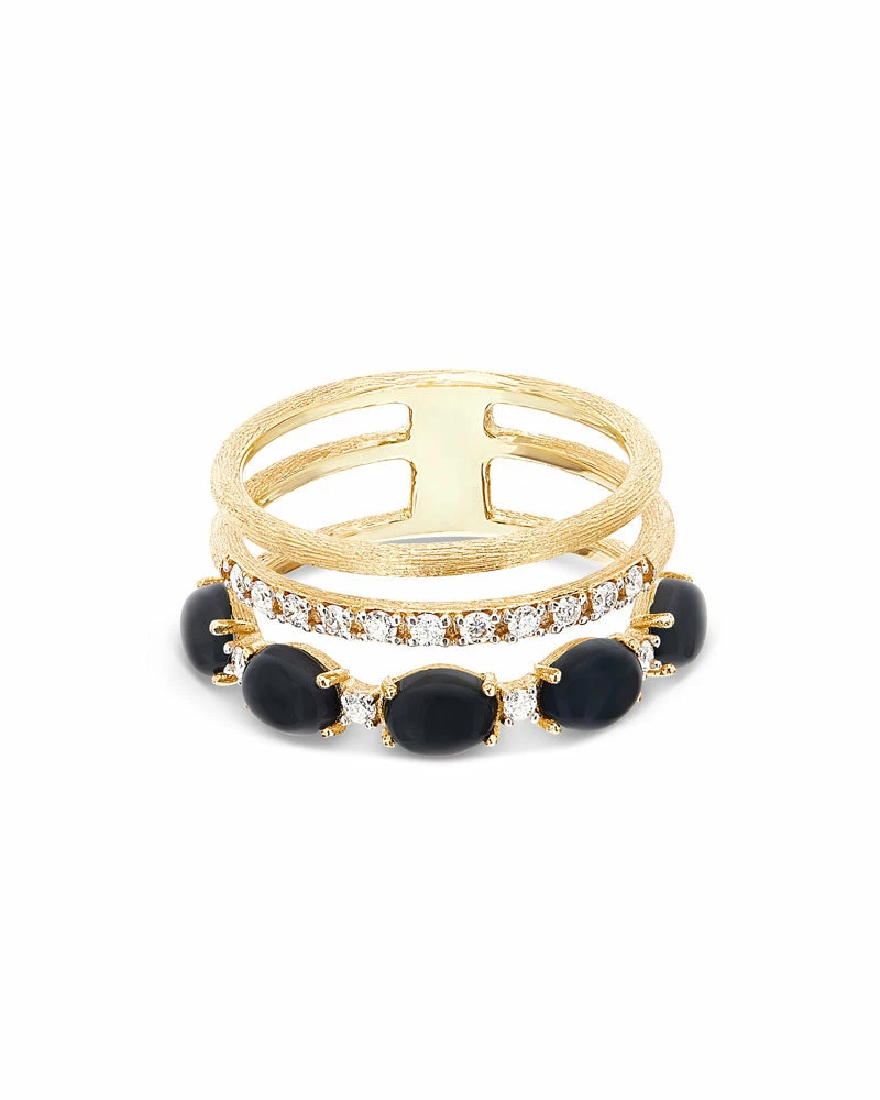 An urban chic flavour distinguishes this black onyx, 18 kt gold and diamonds ring: a work of art to wear.