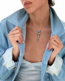 “ipanema” Gold, Grey And Yellow Rutilated Quartz And Diamonds Pendant Necklace