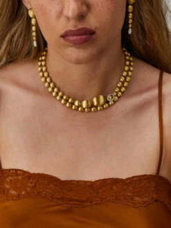 “ivy” Slim Hand- Engraved Gold Boules And Diamonds Convertible Statement Necklace (short)