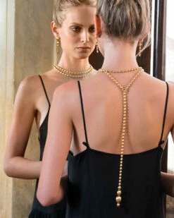 “Ivy” Hand- Engraved Gold Boules And Diamonds Convertible Statement Necklace (SLIM)