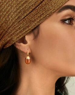 “Petra” Ciliegine Gold And Orange Aventurine Ball Drop Earrings With Diamonds Details (SMALL)