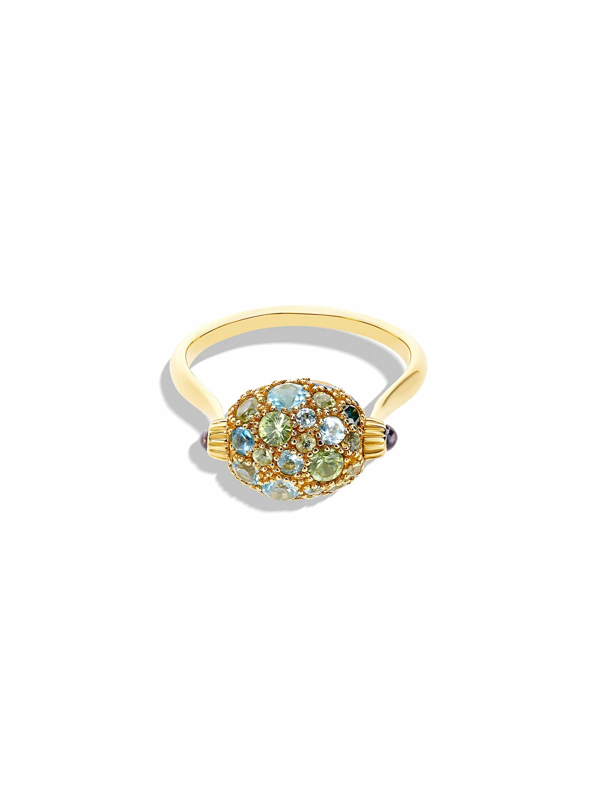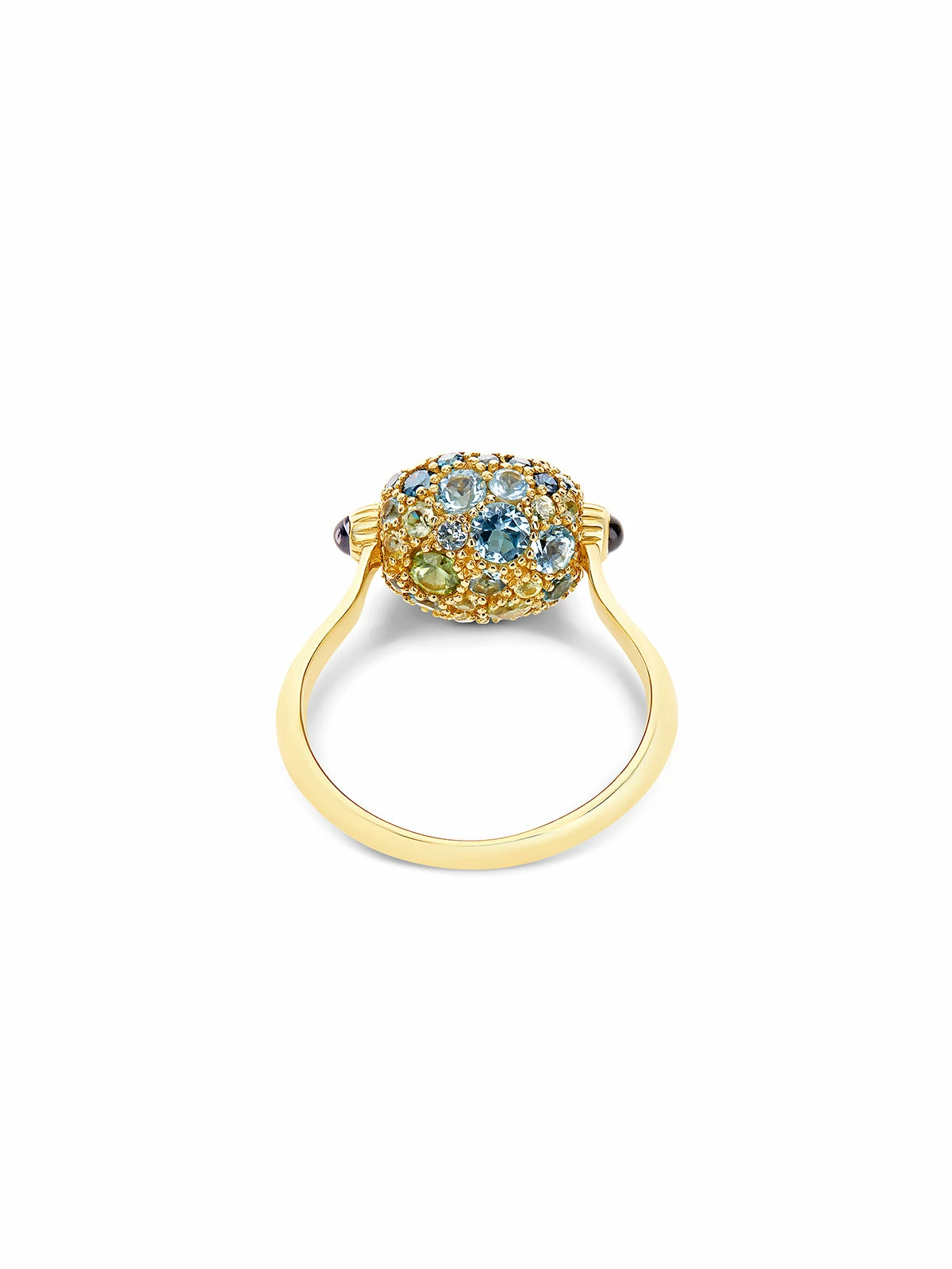 With REVERSE rings, luxury marries the dynamism of creativity, of invention, of surprise: with a simple rotation, in fact, this 18 kt gold ring will show you its precious double! REVERSE alternates a doublette with Mother of pearl and LONDON Blue Topaz and pavè of Blue Diamonds, Green Sapphires and Swiss Blue Topaz. A sumptuous game of lights that will surprise you every time you’ll wear it.