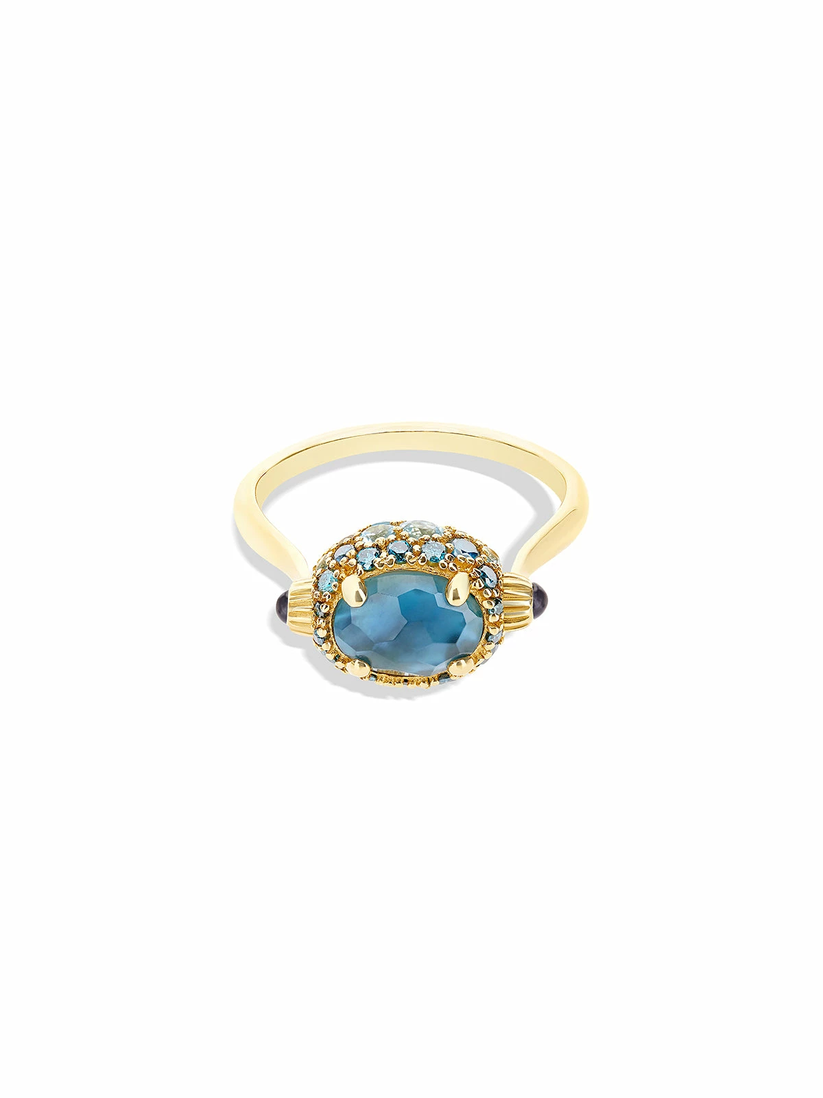 – Central Doublette in LONDON BLUE TOPAZ and MOTHER OF PEARL Weight (total): 1.25 CT