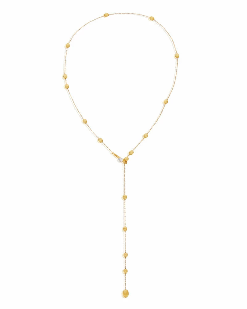 18kt gold boules chase each other in this fresh, contemporary necklace characterized by our unmissable versatility. The hook closure crowned by a refined diamond detail, summa of aesthetics and functionality, opens and closes like a spring, allowing you to adjust and interpret the necklace in the most varied ways. You can choose between a smooth, more classic interpretation, linking the closure to one of the final boules, or a more transgressive one, opting for a more high-necked version. A versatile and light jewel, and capable of adapting to all your facets!