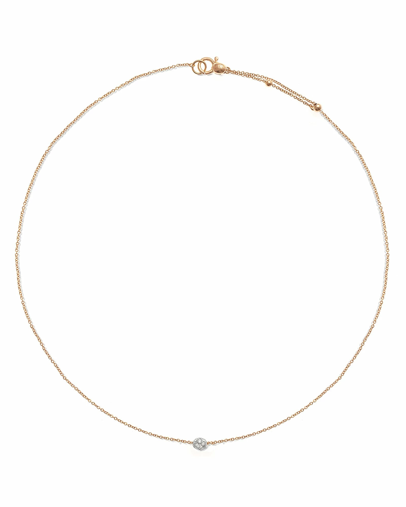 The 18kt rose gold and the beautiful diamonds give life to this necklace as essential as it is unique, our interpretation of the light point, one of the most beloved necklaces ever. Romantic and glamour at the same time, this is the jewel that can’t be missed in your jewelry box. This collar is perfect to be worn both alone or matched with other pendants (as the CS11-583 and the CS12-589), for a more contemporary look.