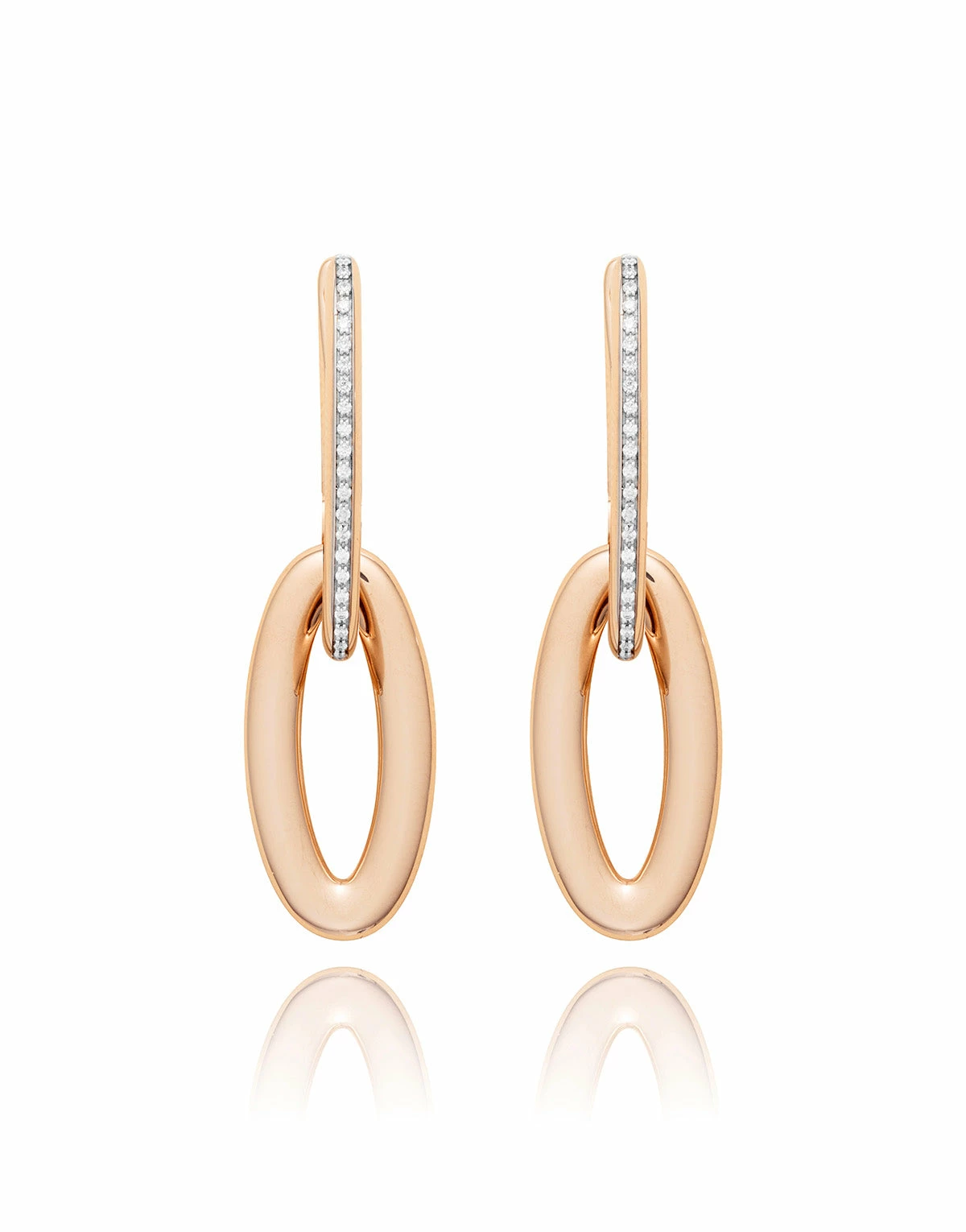 Small masterpiece of goldsmith art, these earrings in 18kt rose gold and diamonds of the Icon collection sublime magisterially beauty and contemporary taste, becoming poetries of light and elegance.
