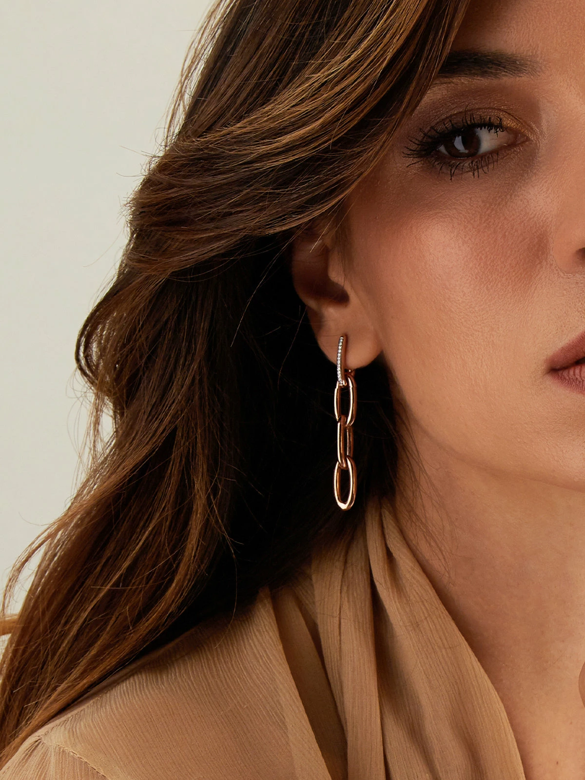 LIBERA earrings meet LIBERA SOUL, the quintessence of the collection, rewriting the canons of this earring and creating a luxurious contamination. A masterpiece of versatility and craftsmanship in 18kt rose gold and diamonds.