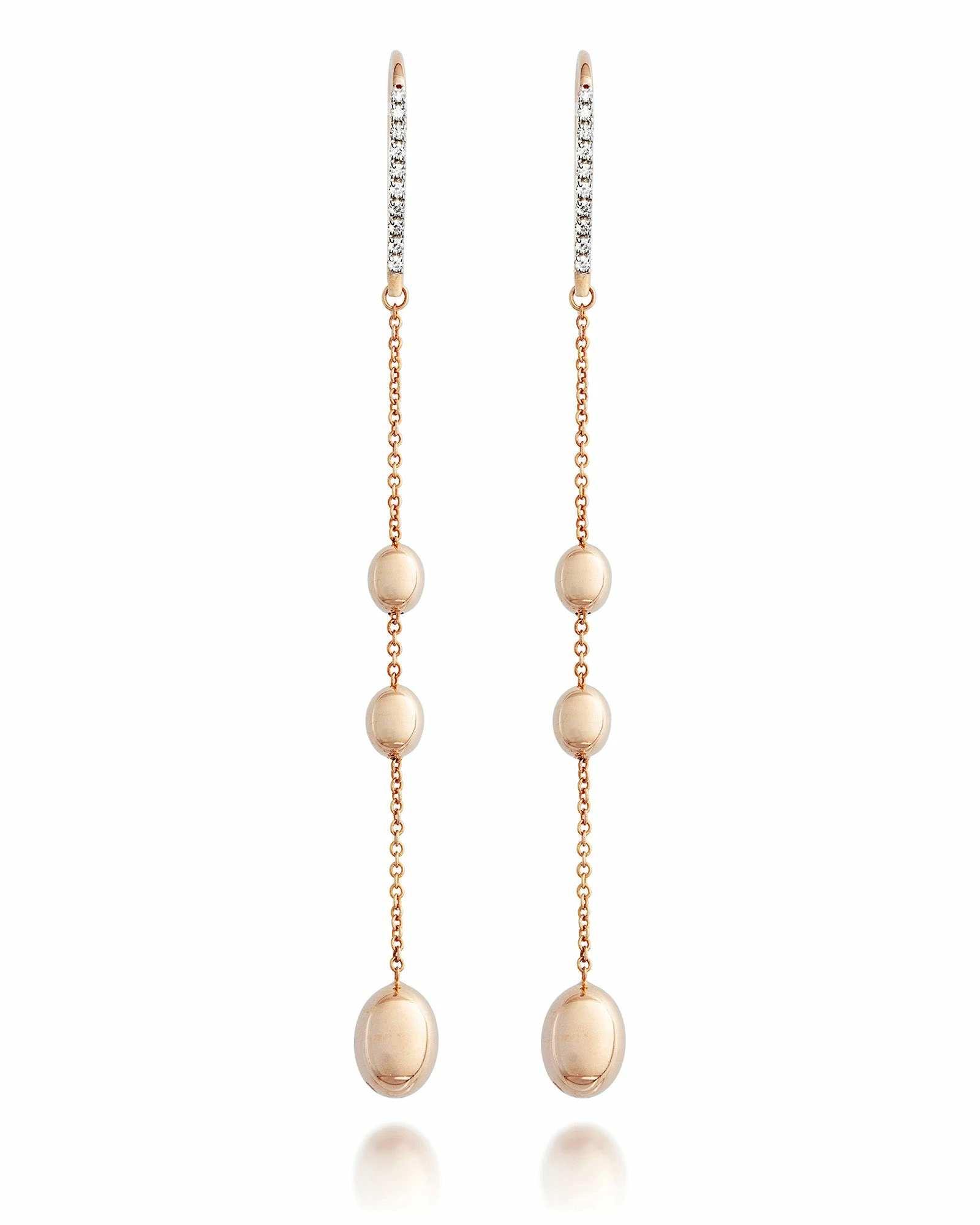 Drops of a sparklimg rain, these 18kt rose gold and diamonds earrings will give a touch of class and movement to your outfit.
