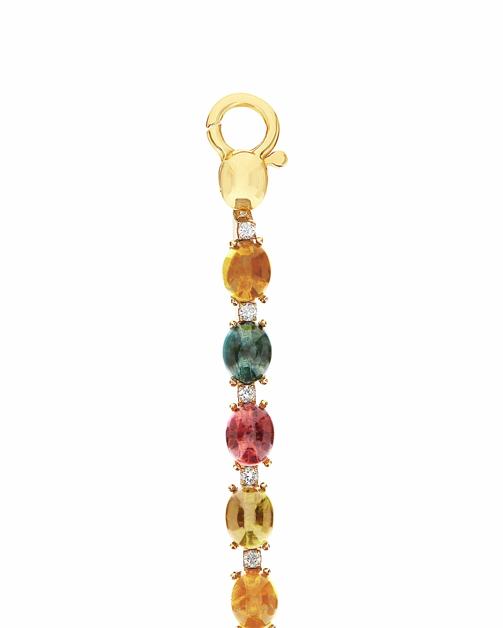 Refined bracelet in 18kt gold, diamonds and colorful tourmalines. A jewel that looks like the palette of the greatest of artists: Nature. A unique work of art, thanks to the uniqueness of the stones that compose it, never alike.