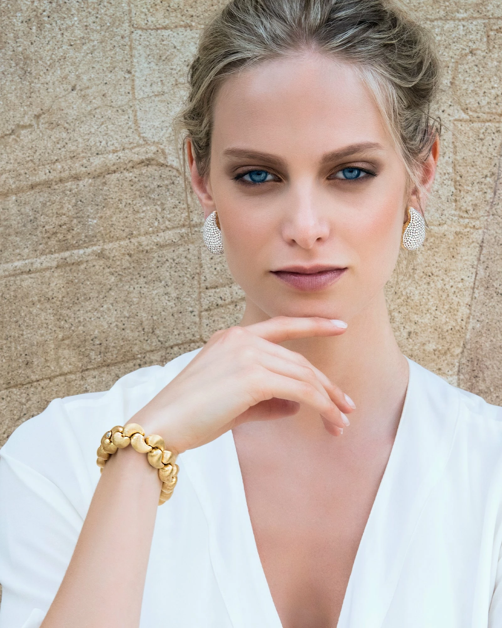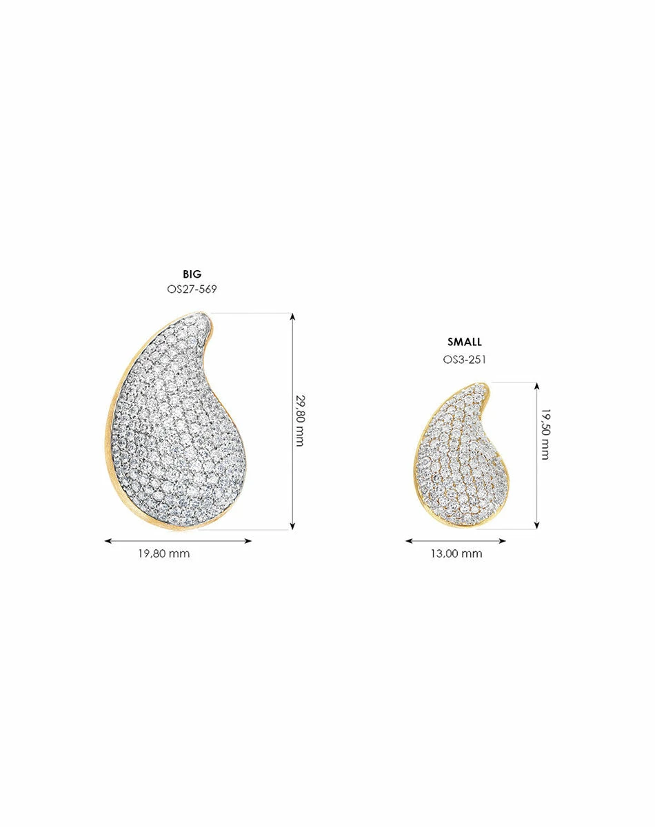 Paisley, a motif with very ancient origins and much loved by Laura, becomes bold and sensual at the same time in these 18kt gold earrings covered with diamonds.