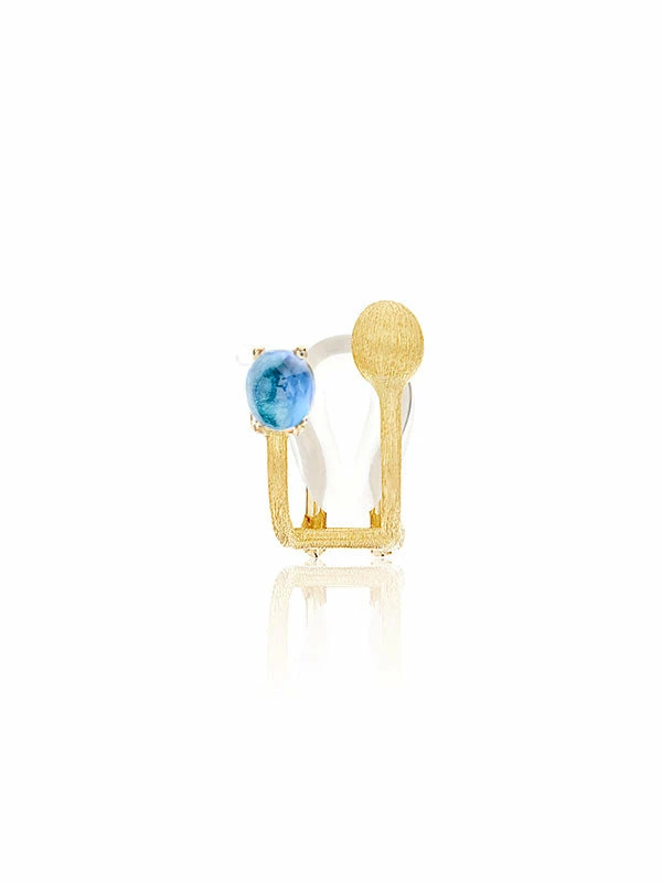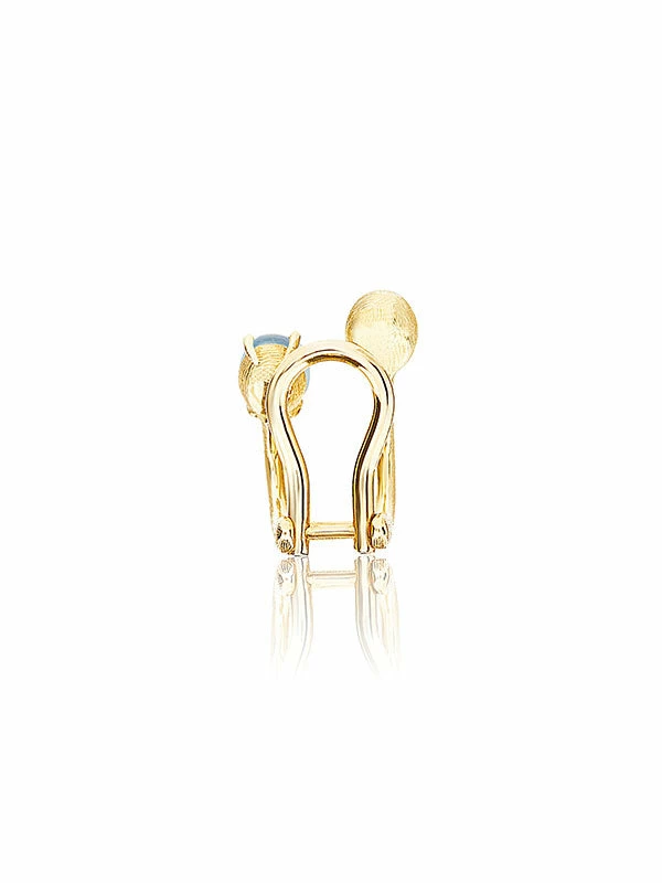The ear cuff cannot be missing from your jewelry collection. Tiny and sparkling, just like Peter Pan’s iconic advisor, this version of the TRILLY earring, entirely handmade like all Nanis creations, is characterized by an engraved 18kt gold boule and a London Blue Topaz boule.It is perfect when matched with other models of earrings or, simply, if you do not have a piercing in the upper part of the ear but would still like to be able to adorn it! What makes TRILLY unique is also the special silicone-coated clip closure system designed to gracefully hug the ear, allowing you to wear this small masterpiece of gold and diamond manufacturing with extreme ease and at the same time guaranteeing an excellent fit… Once you have worn this jewel, you will forget about it.An earring that will give an extremely cool touch to your look!